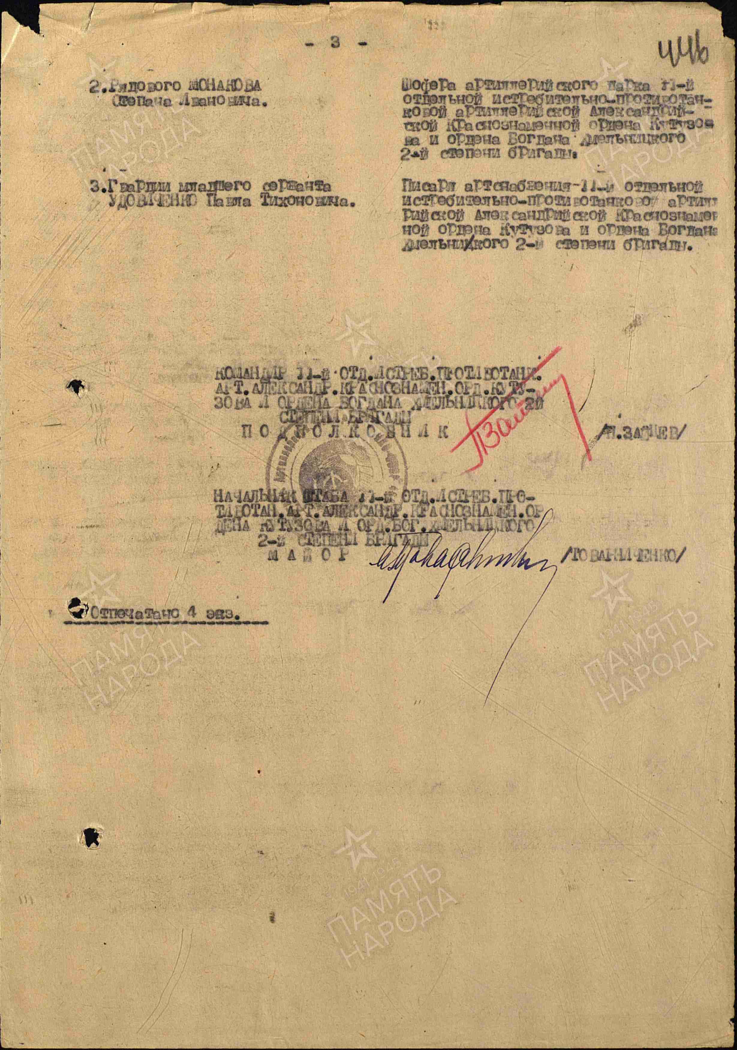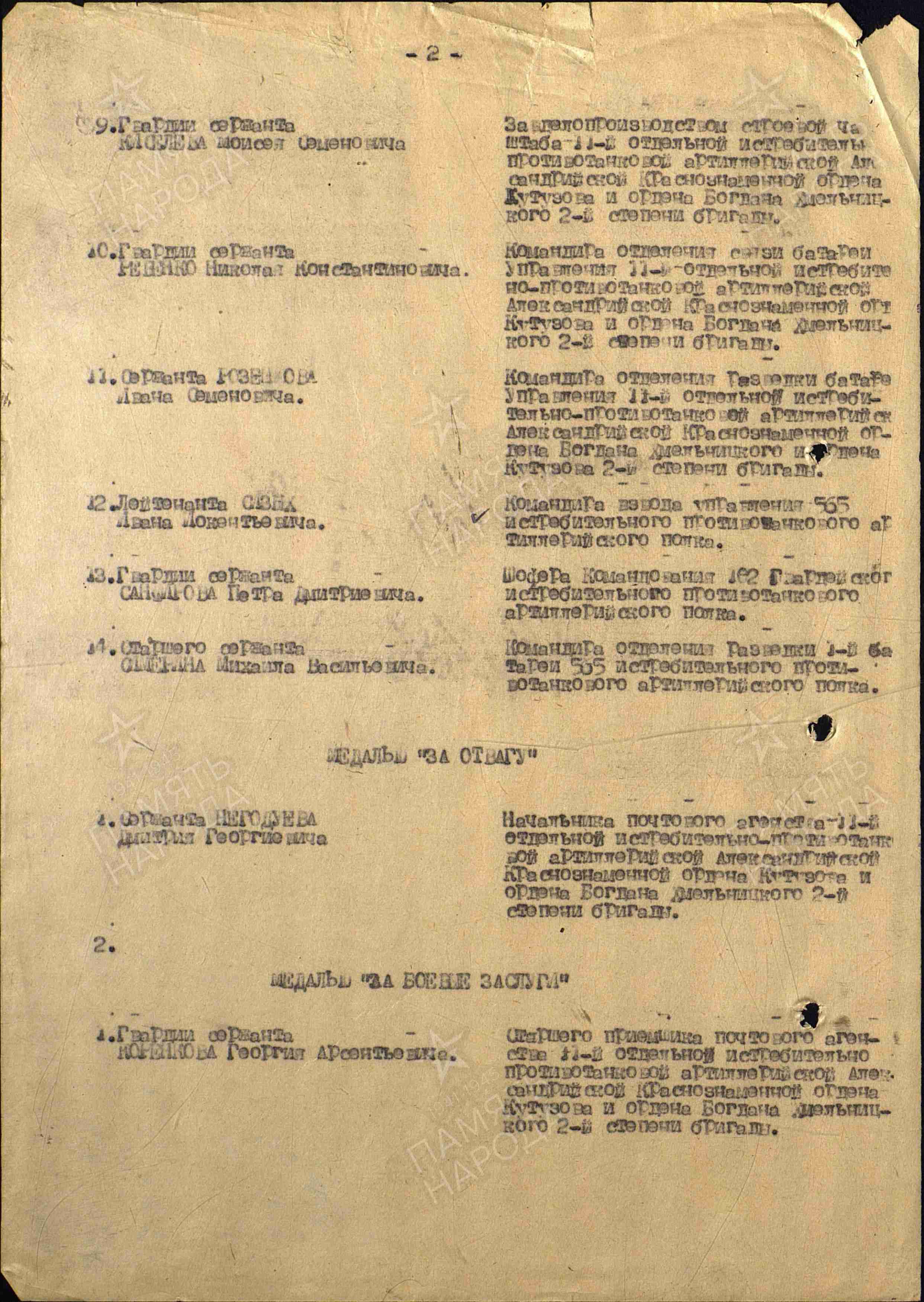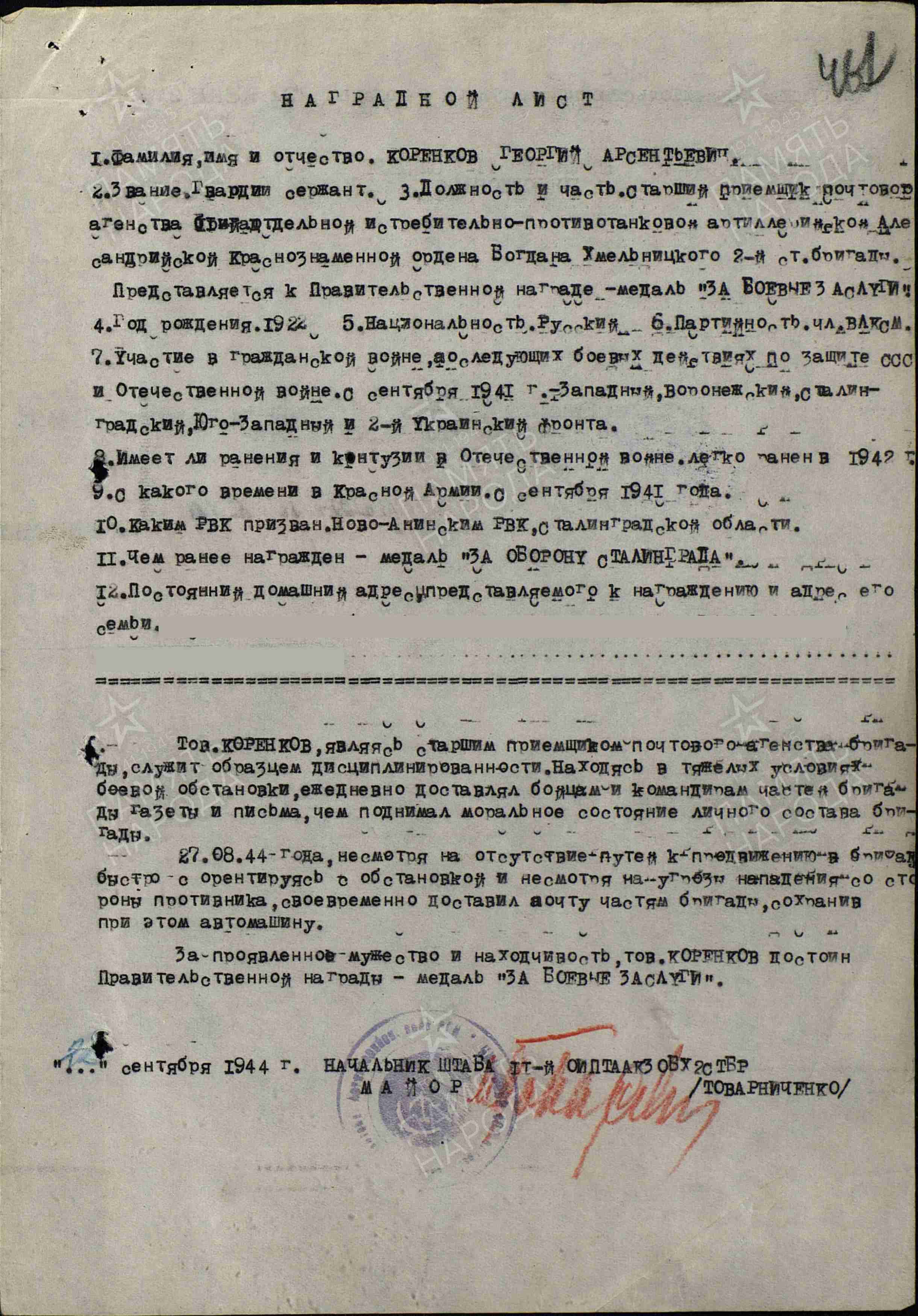 - Расположение документа: Картотека награждений, шкаф 43, ящик 13