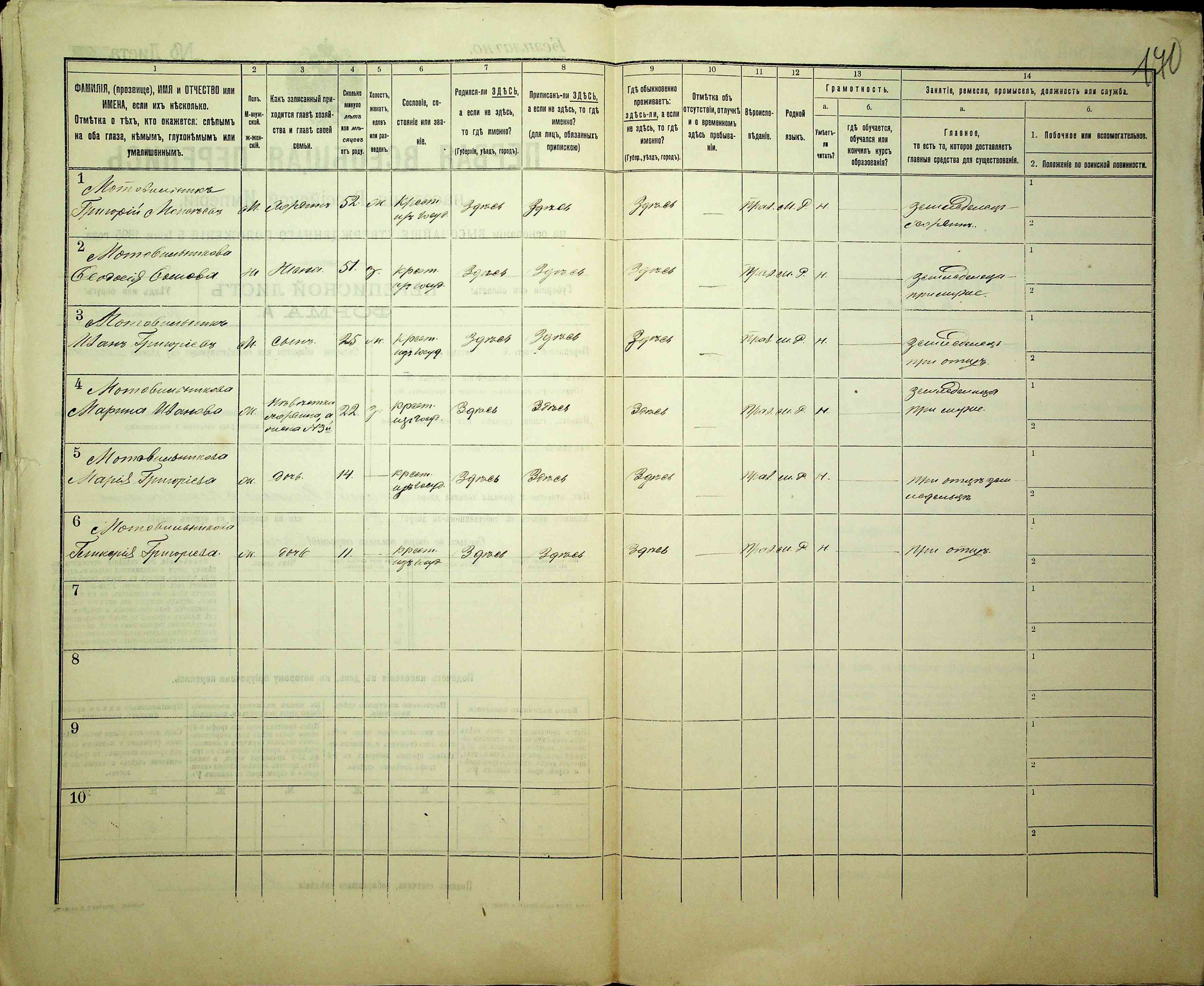 - Мотовильник Иван Григориев (25 років, син)-женат