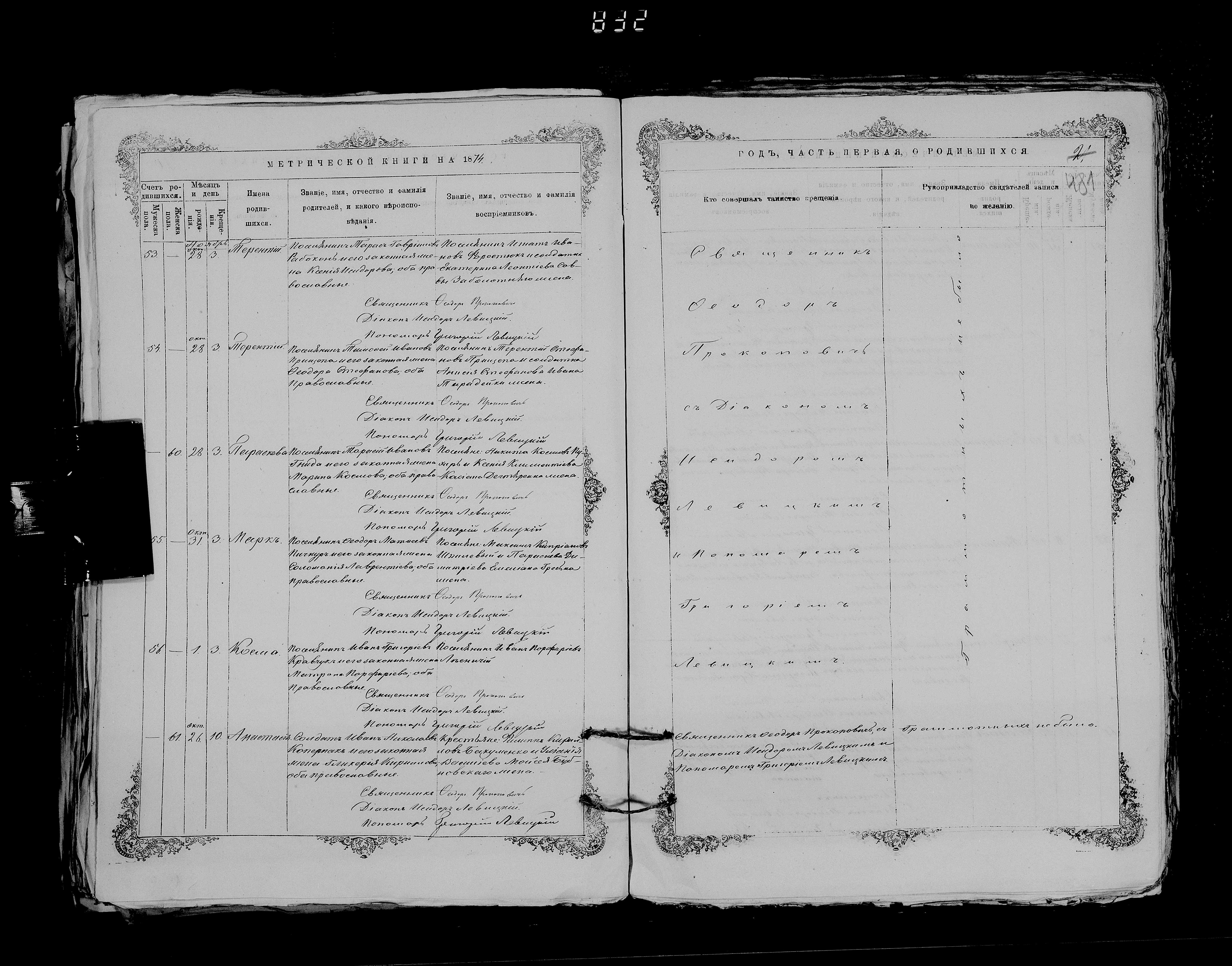 1874. Запис про народження дитини