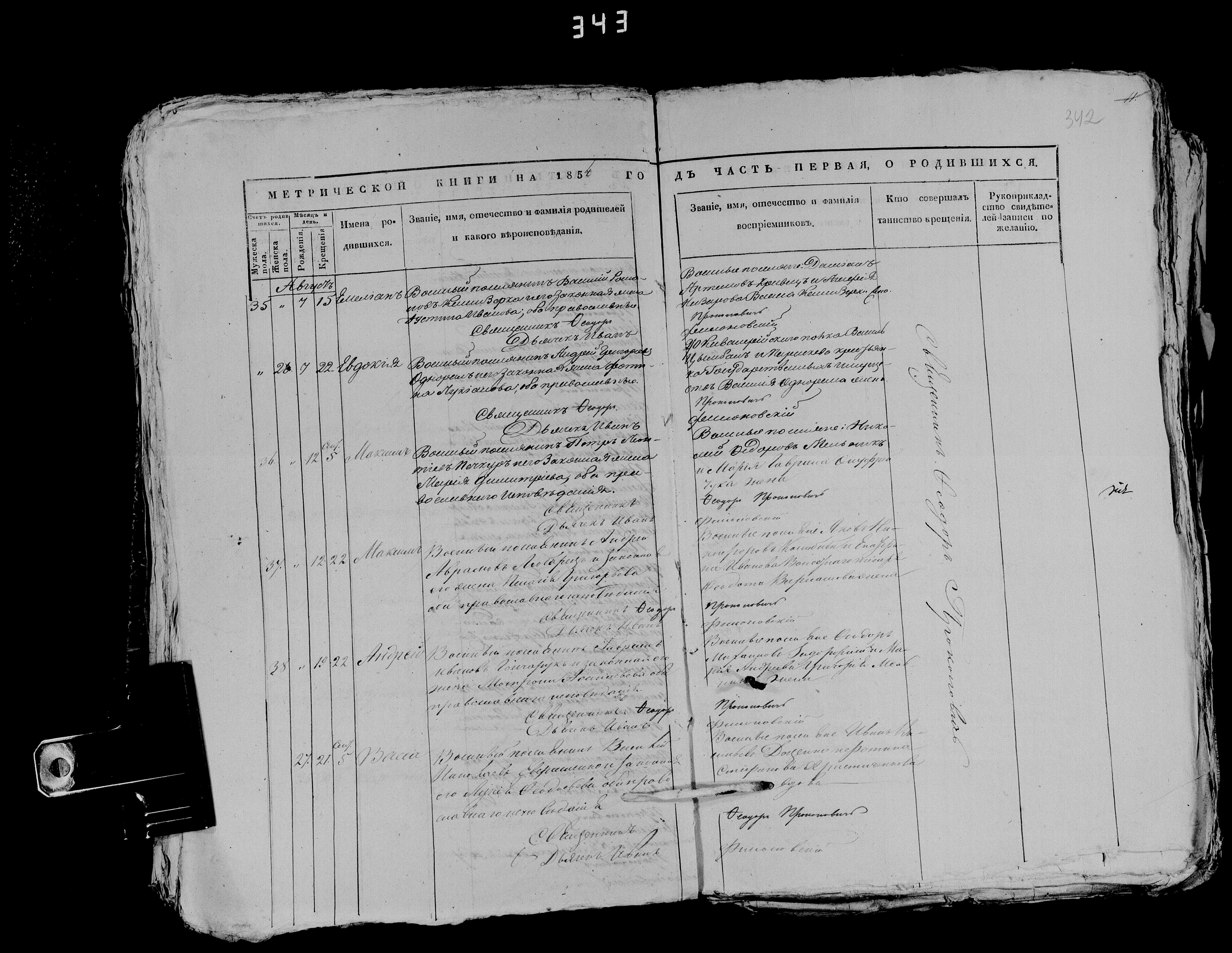 1853. Запис про народження