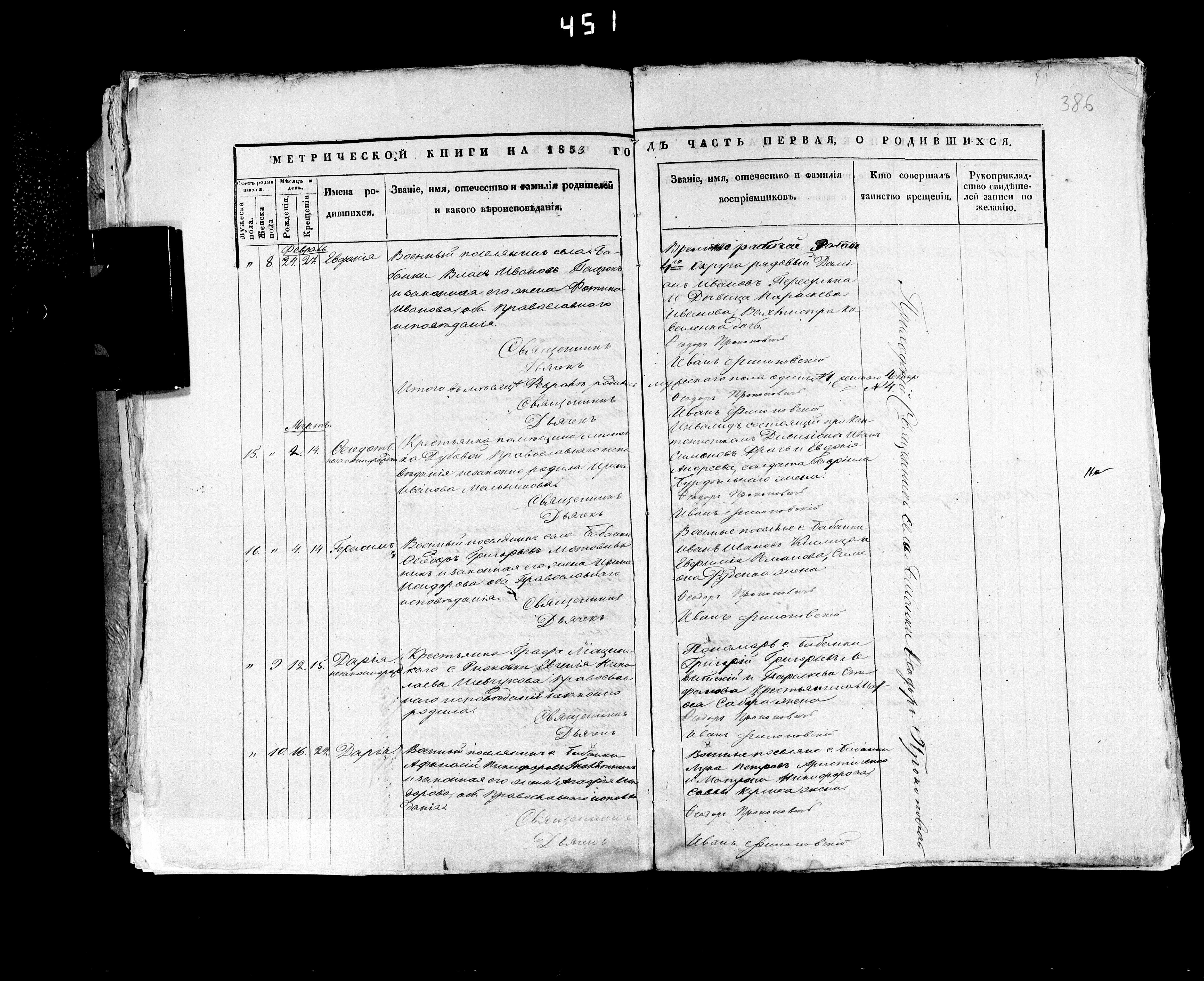 1853. Запис про народження