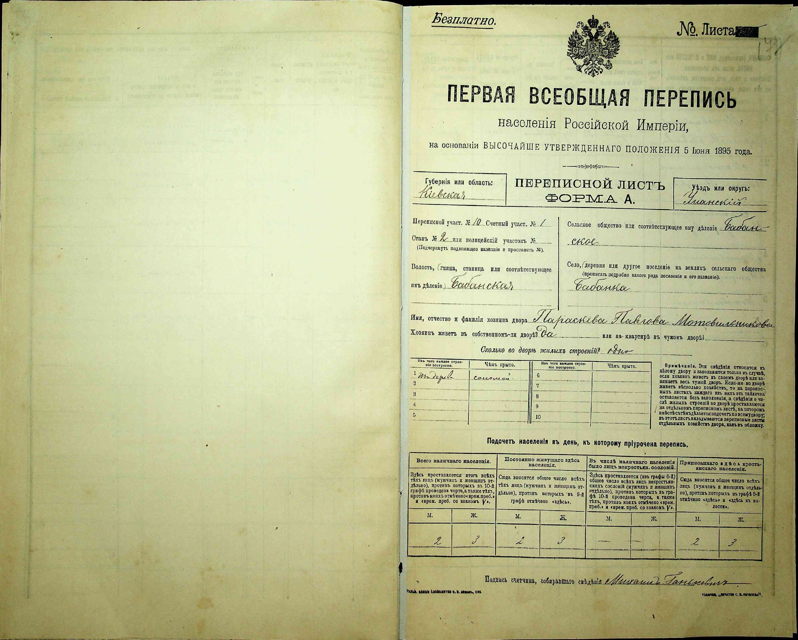 Рік народження дітей Ирина, Митрофан та Нікіфор визначено з Перепису населення Російської імперії 1897 року