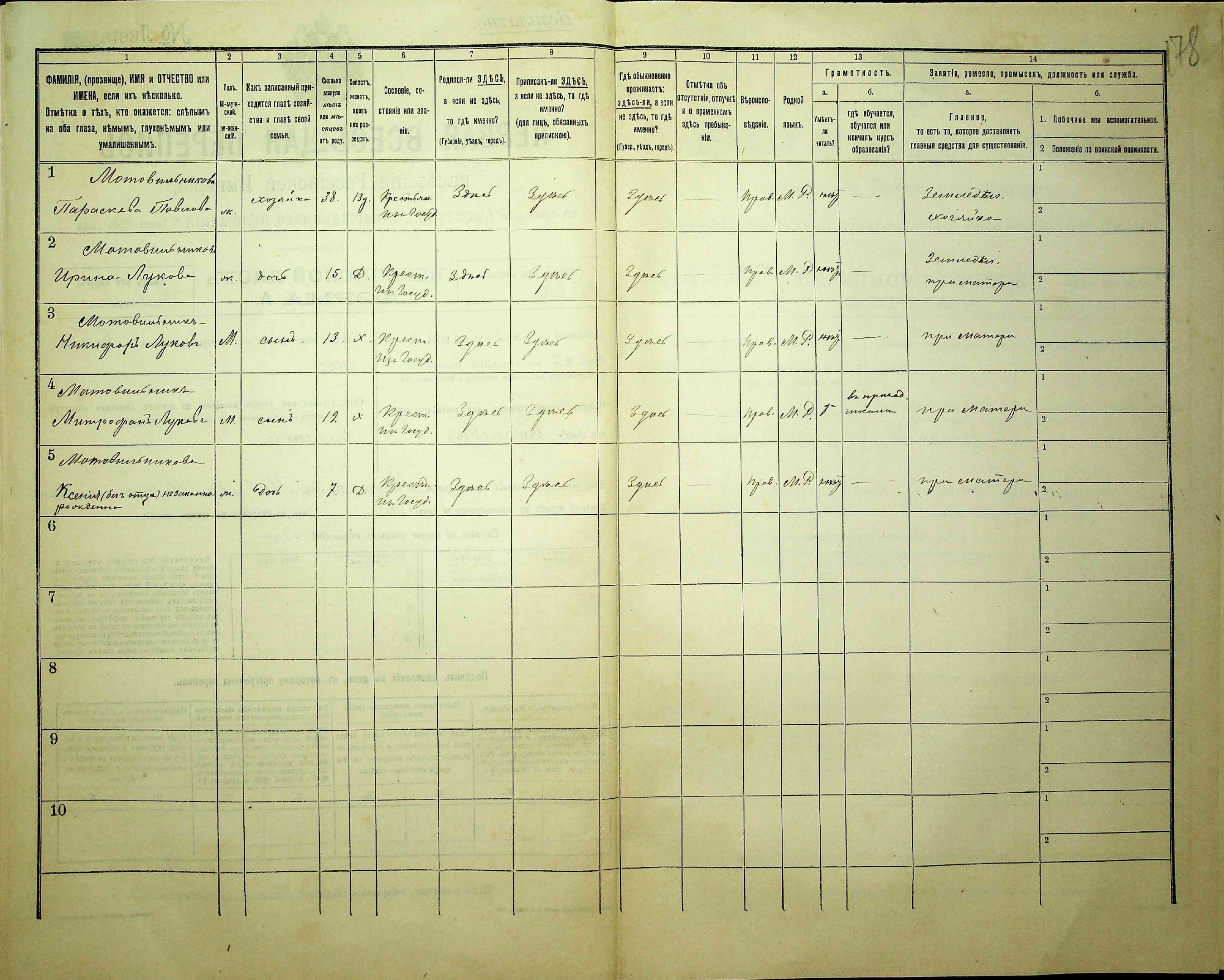 - Параскева Павлова Мотовильникова (38 років), хозяйка, вдова