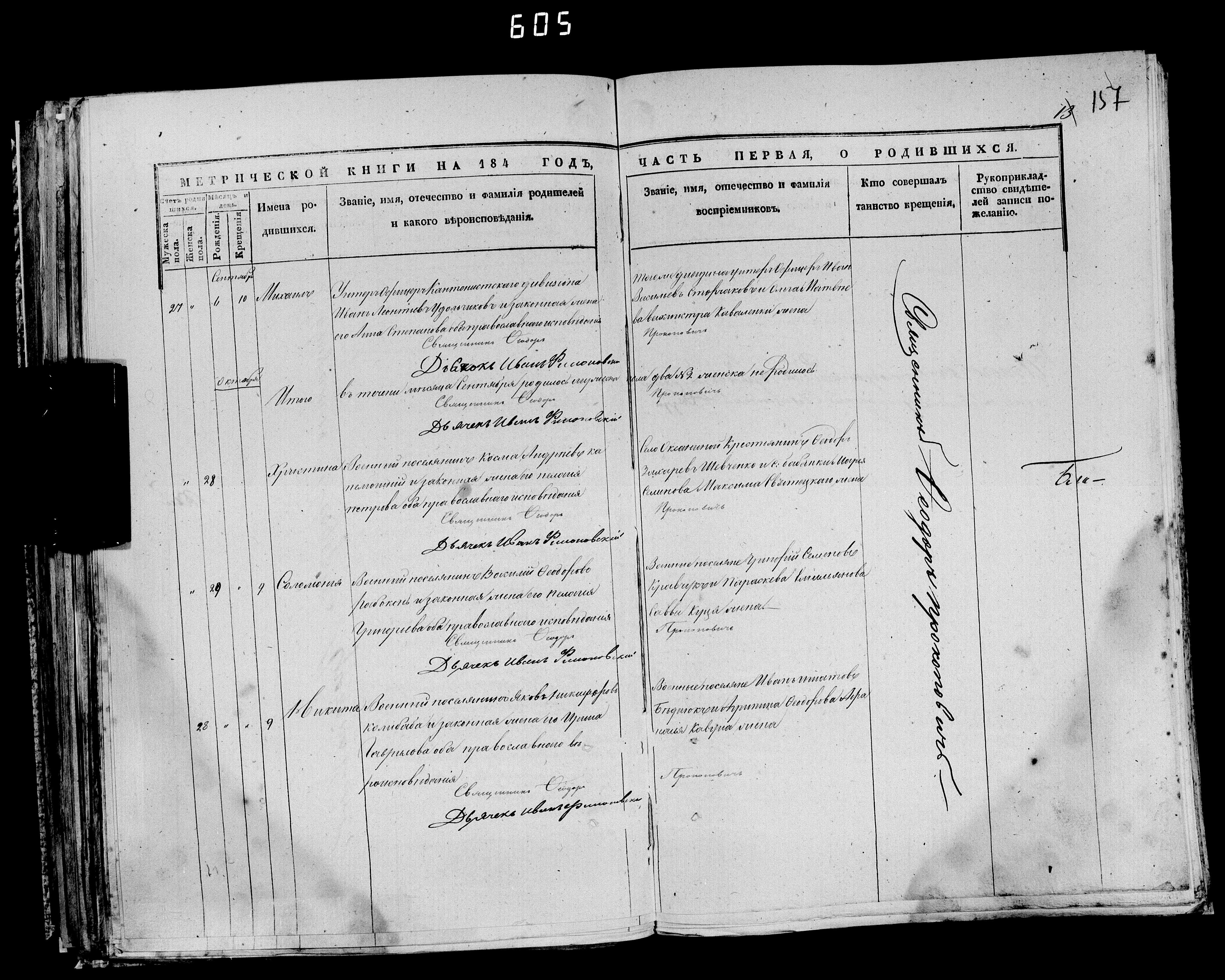 1845. Запис про народження дитини