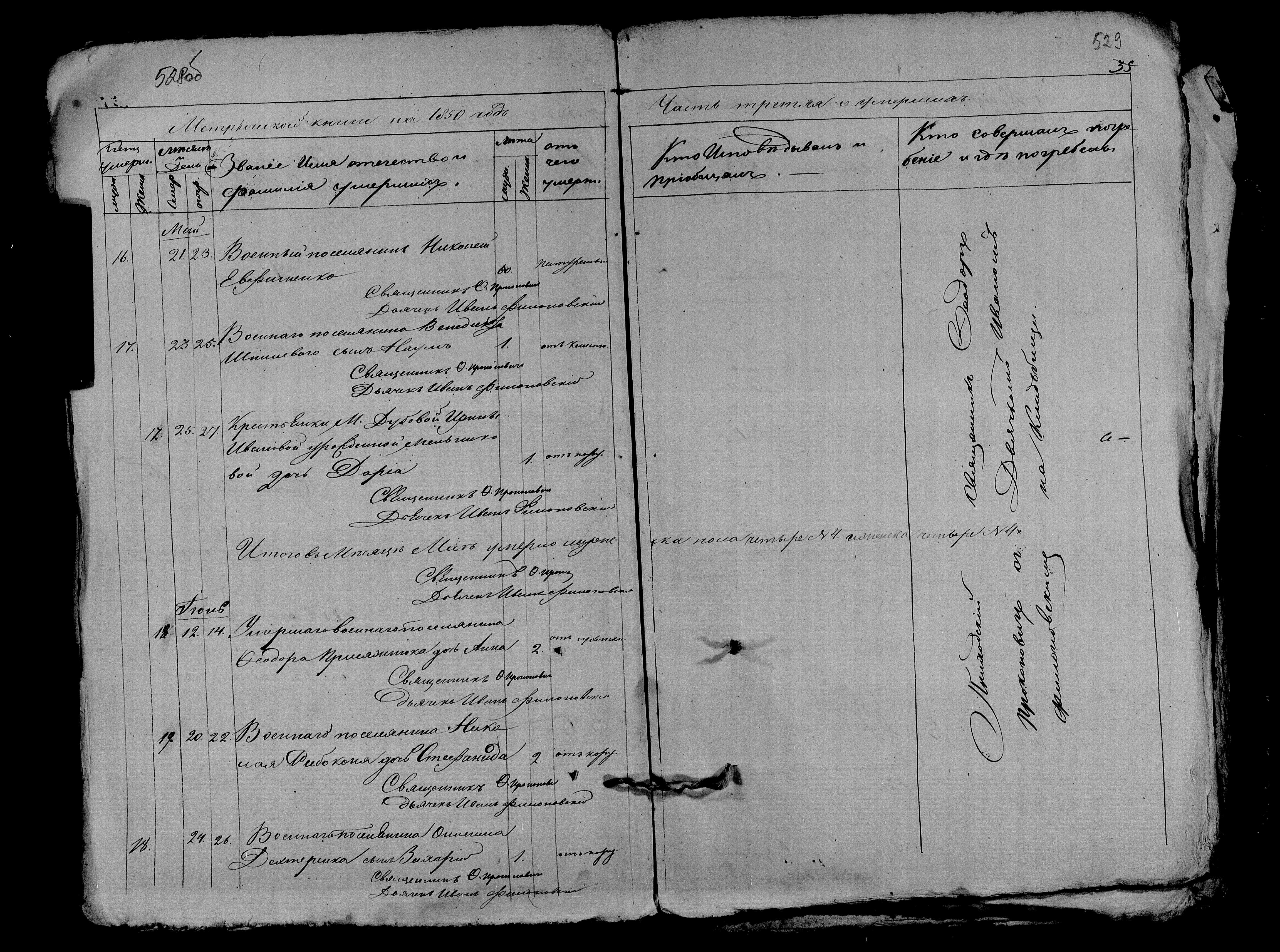 1850. Запис про смерть дитини