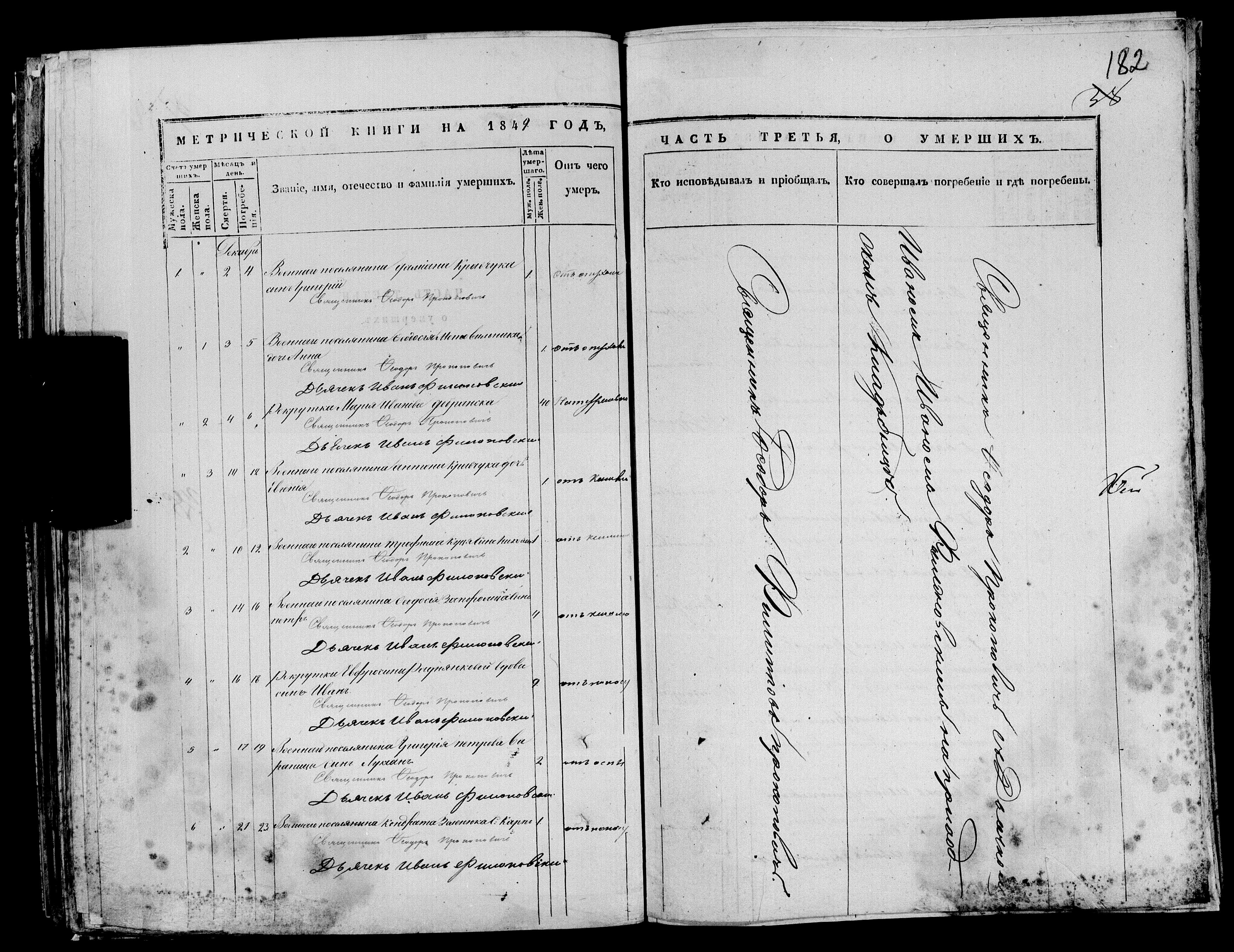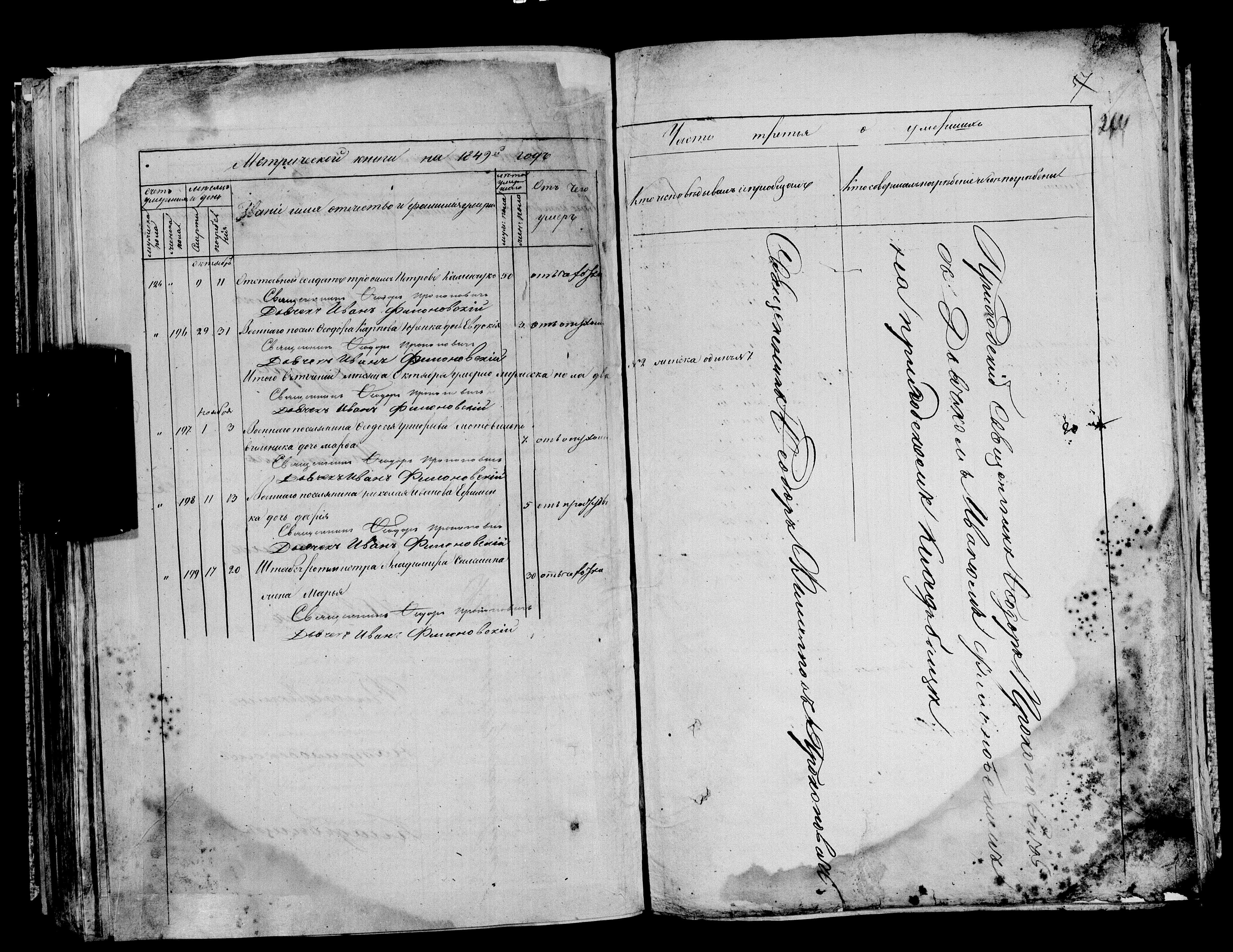 1849.12. Запис про смерть дитини