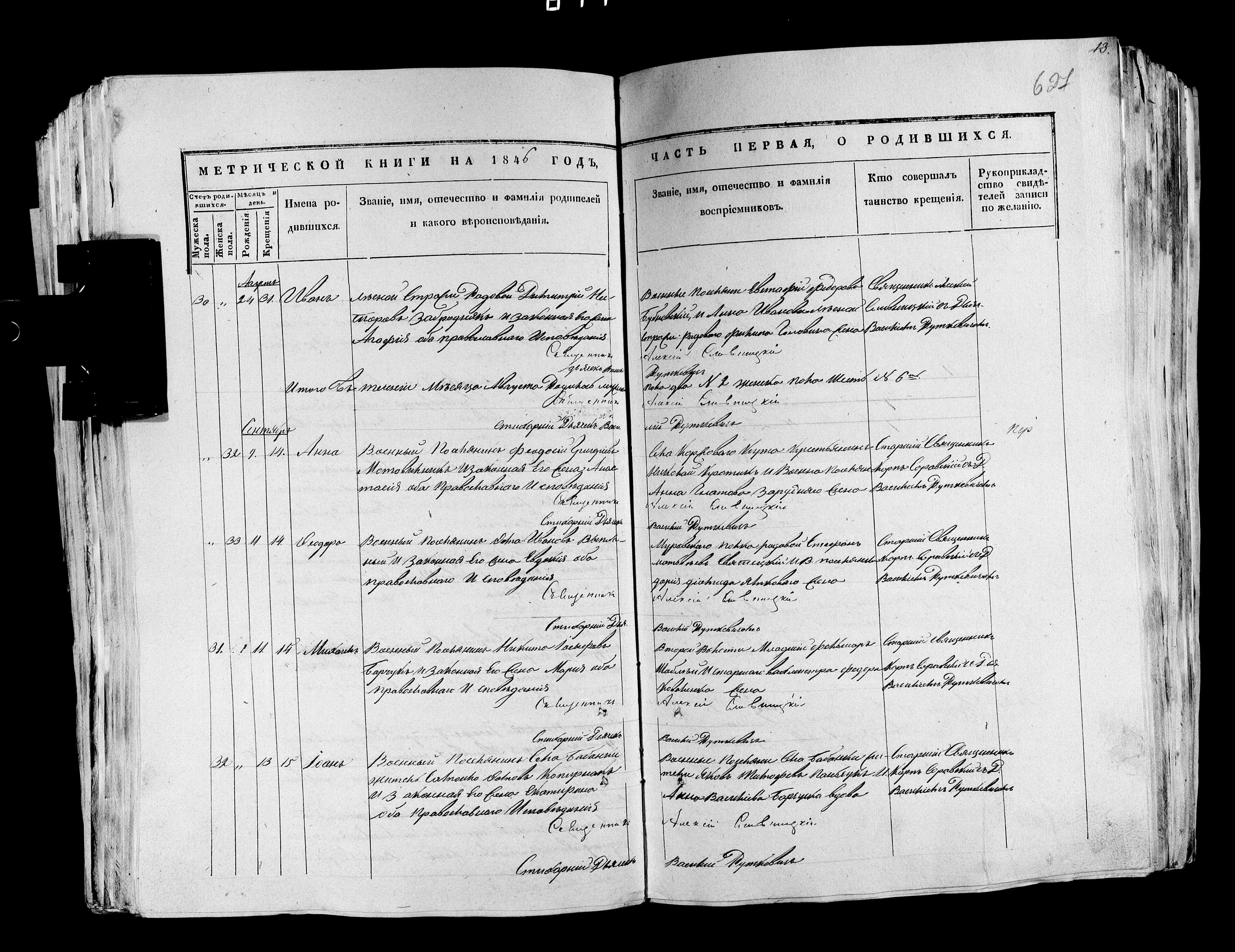 1846. Запис про народження дитини