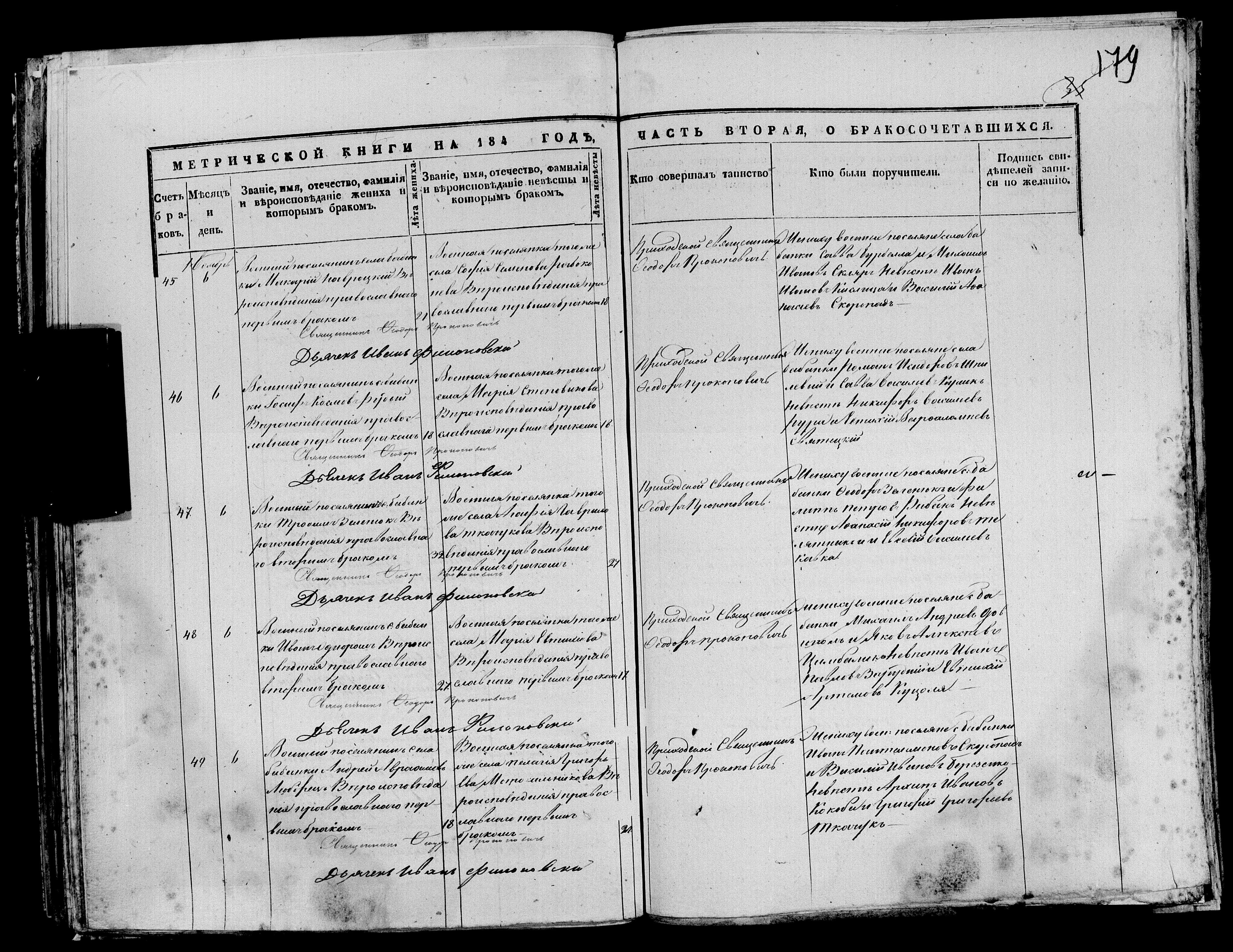 1849. Запис про одруження