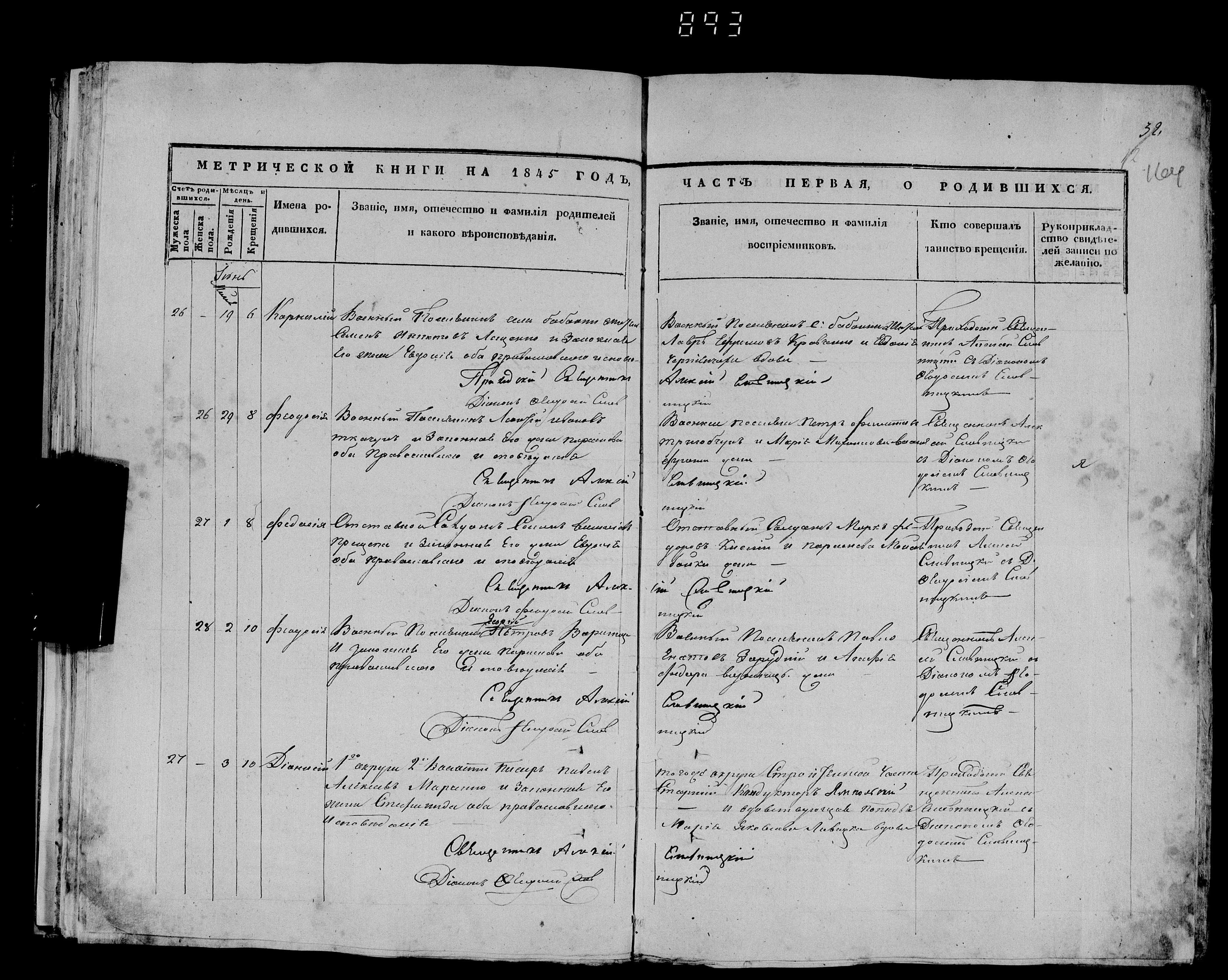 1845. Запис про народження